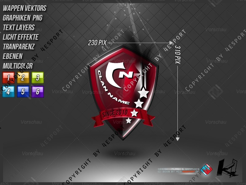 Wenn wir der ClanName und URL ändern sollen in PSD Datei, bitte Klicken beim Einzelpreis unter optionale Zusatzleitungen, auf Clanname + Slogon + URL änderung (für 5,- EUR), Sie können auch diesen LOGO in Flash Animation erhalten (für 15,-EUR).